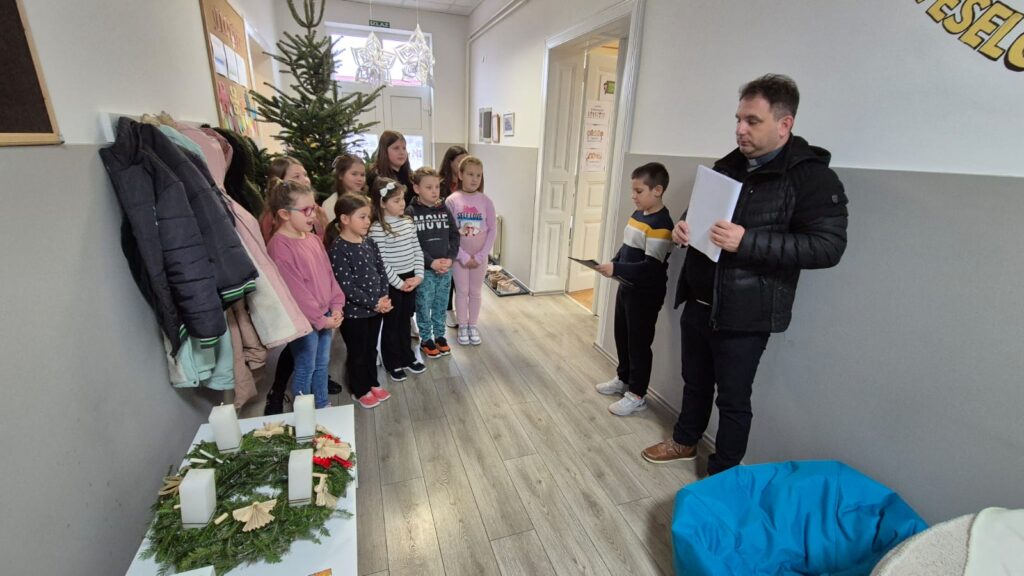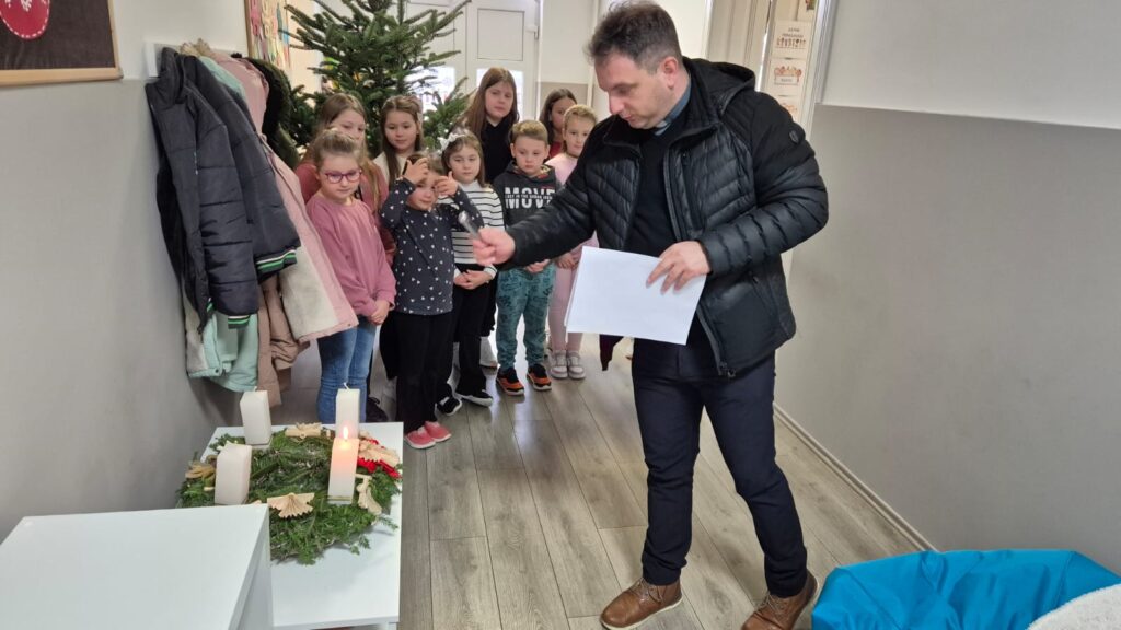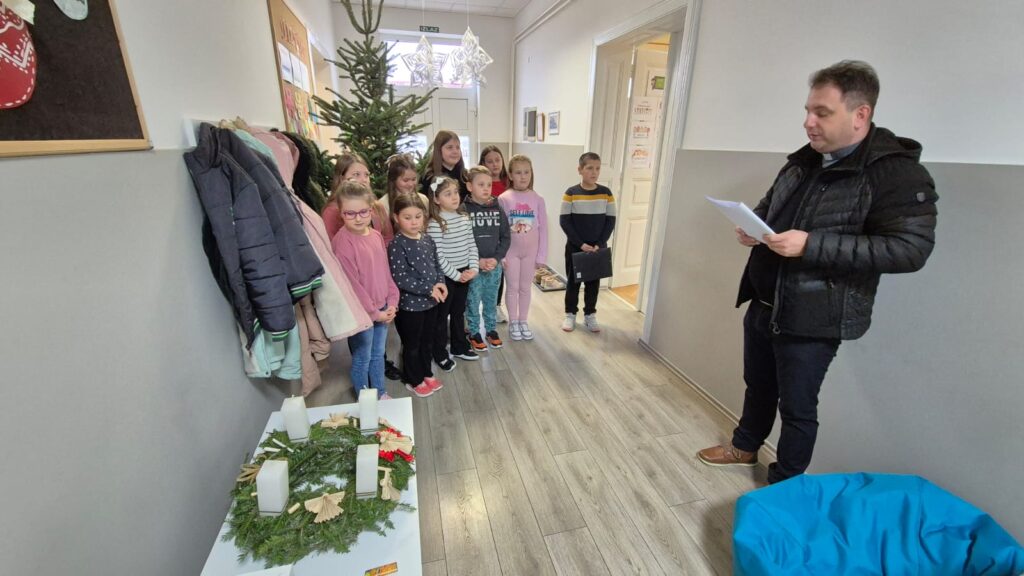 U srijedu, 3. prosinca, u našoj školi održan je svečani blagoslov adventskih vijenaca i paljenje prve adventske svijeće – svijeće nade. Obred je predvodio vlč. Tomica Božiček.