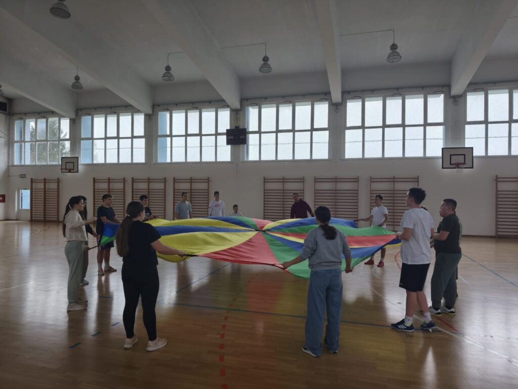 Šareni padobran: učenici su zajednički držali padobran, dok je jedan učenik puzao ispod njega, pazeći na brzinu izvođenja.