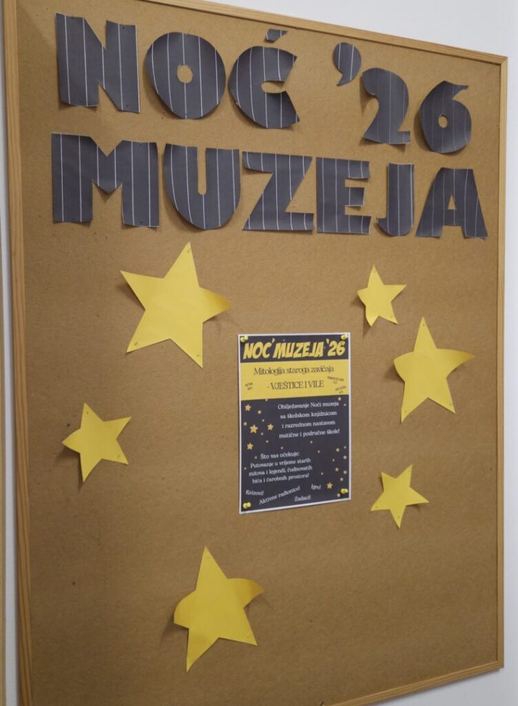 Hrvatsko muzejsko društvo ove je godine obilježilo kulturnu manifestaciju 21. Noći muzeja, a ista je obilježena i u našoj školi od strane školske knjižnice. Zbog brojnosti razreda s kojima je odrađena nastava, Noć muzeja obilježavala se na nekoliko različitih dana od 30. siječnja do 4. veljače.
