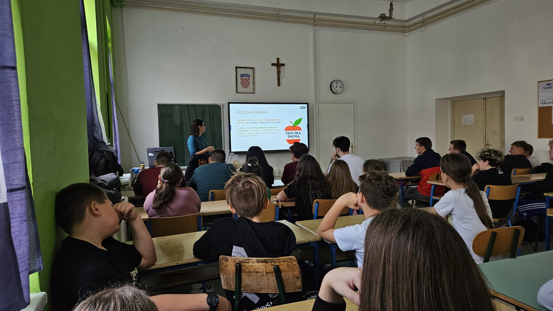 Danas, 3. studenog 2025. godine, je našu matičnu školu posjetila gospođa Dodig Kornelia kako bi se učenicima predmetne nastave obratila o važnosti i potrebi promoviranja zdravog načina života i s njim povezane pravilne prehrane čime se bavi projekt pod imenom Školska shema.