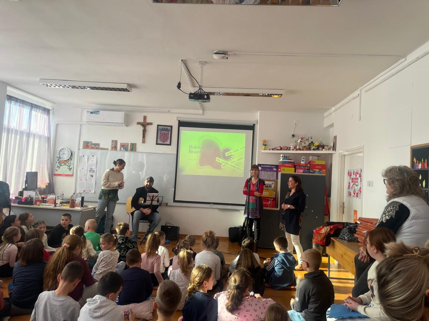 Nakon kratkog predstavljanja, održano je interaktivno predavanje i koncert pod nazivom „Daleki Brazil: ples, ritam, pjev“. Voditeljica programa upoznala je učenike s Brazilom kao zemljom na razmeđu triju kultura – starosjedilačke, europske i afričke. Učenici su saznali gdje se Brazil nalazi na karti, upoznali tradicionalne stilove nošnji, hranu te bogatu i raznoliku glazbenu baštinu.