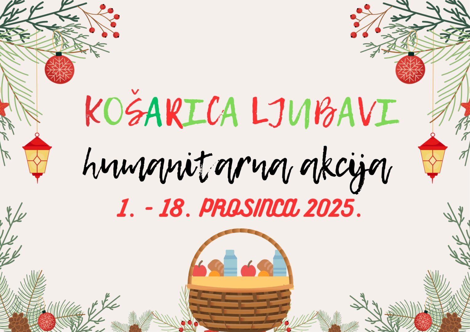 Pozivamo sve učenike i djelatnike matične i područne škole da se u skladu sa svojim mogućnostima uključe u akciju koja će trajati od 1. prosinca do 18. prosinca 2025. Prikupljaju se higijenske potrepštine, namirnice poput brašna, riže, soli, šećera, konzervirane hrane, ulja i tjestenine te ostala nekvarljiva roba.