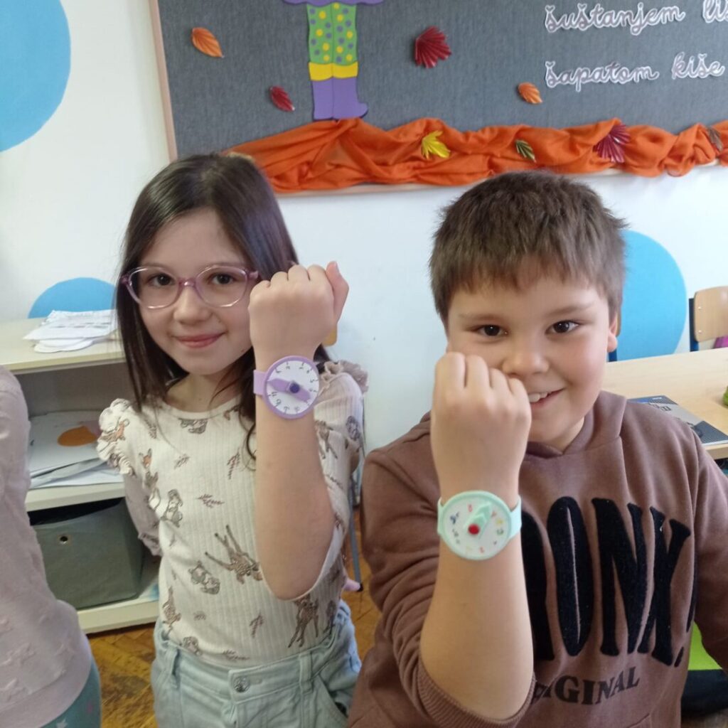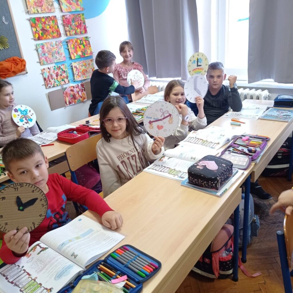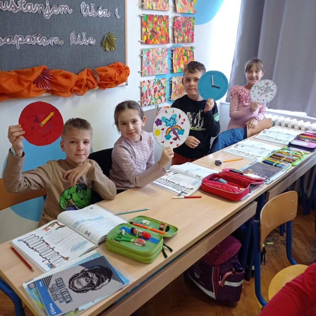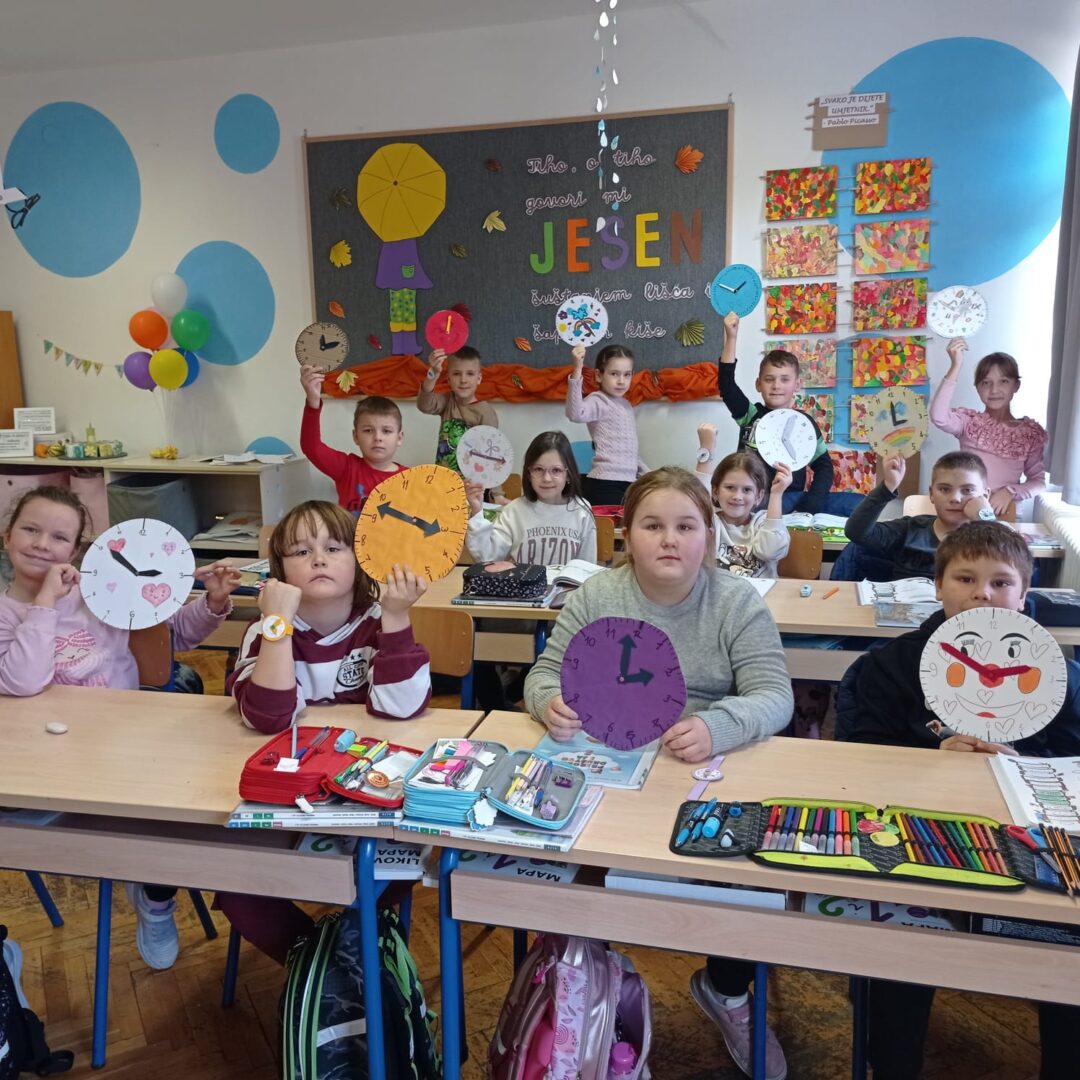 U sklopu nastavne teme iz Prirode i društva Sat/ura kod učiteljice Paule Hutinski, učenici su se kroz raznolike i zabavne aktivnosti upoznavali s praćenjem i razumijevanjem vremena. U školi su izradili svoje ručne satove, a kod kuće, kao praktični zadatak, kreativne i maštovite zidne satove. Također su zajedno ukrasili jedan drveni sat koji je sad postao njihov razredni sat.