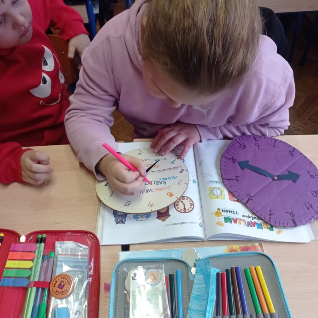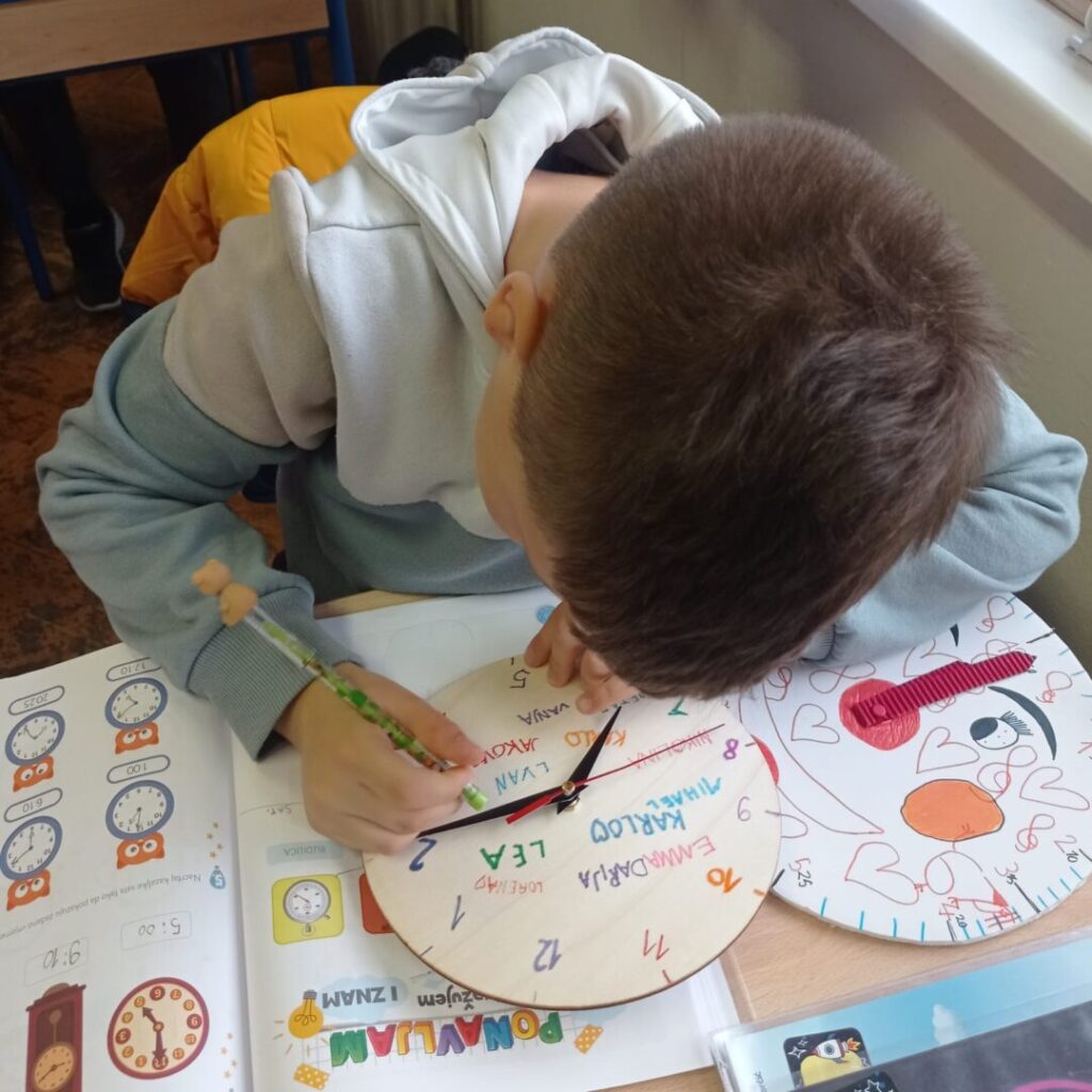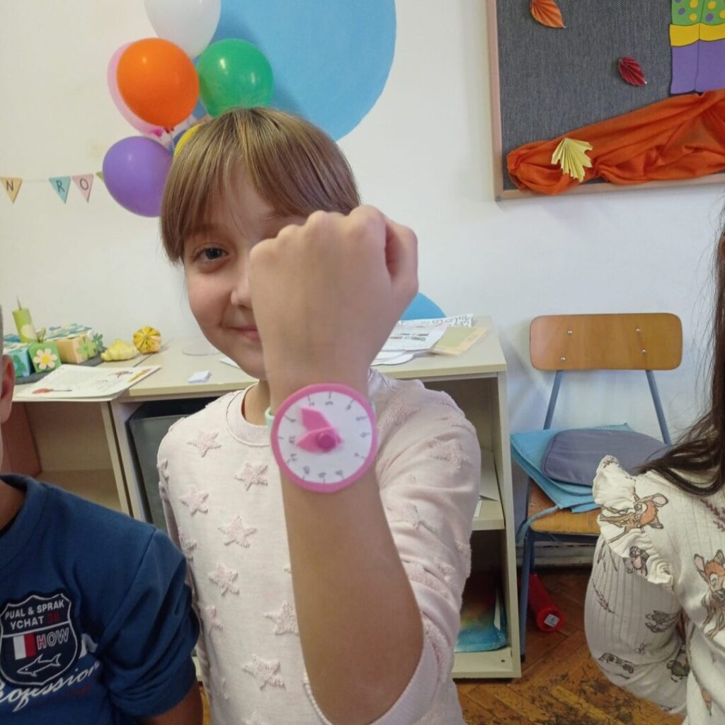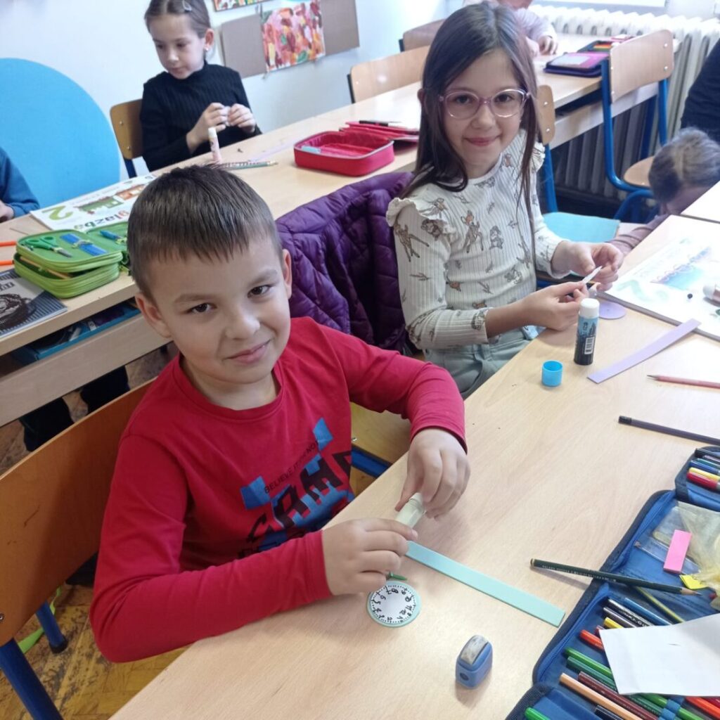 U sklopu nastavne teme iz Prirode i društva Sat/ura kod učiteljice Paule Hutinski, učenici su se kroz raznolike i zabavne aktivnosti upoznavali s praćenjem i razumijevanjem vremena. U školi su izradili svoje ručne satove, a kod kuće, kao praktični zadatak, kreativne i maštovite zidne satove. Također su zajedno ukrasili jedan drveni sat koji je sad postao njihov razredni sat.