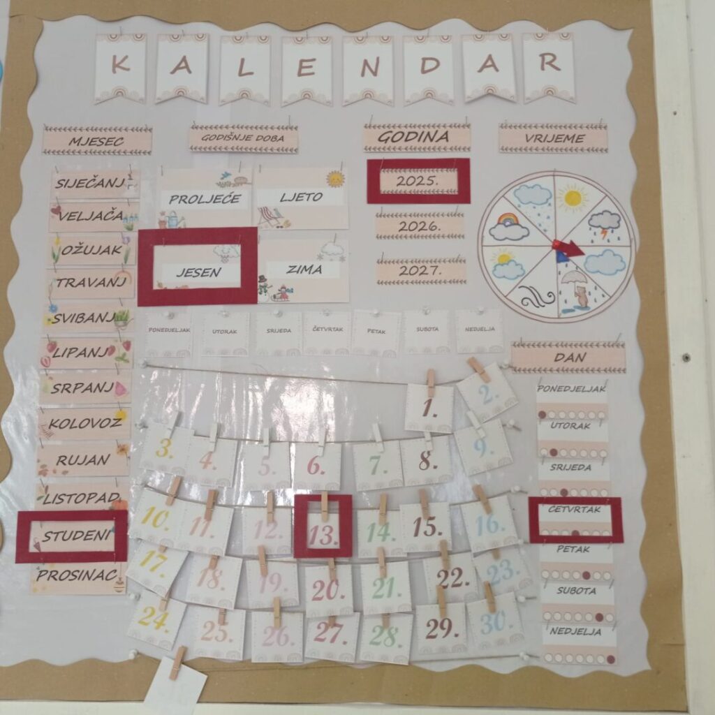 Svaki tjedan dvoje učenika preuzima „dužnost kalendara“ i samostalno postavlja sve oznake – što razvija odgovornost, snalažljivost i sigurnost u razumijevanju vremena.