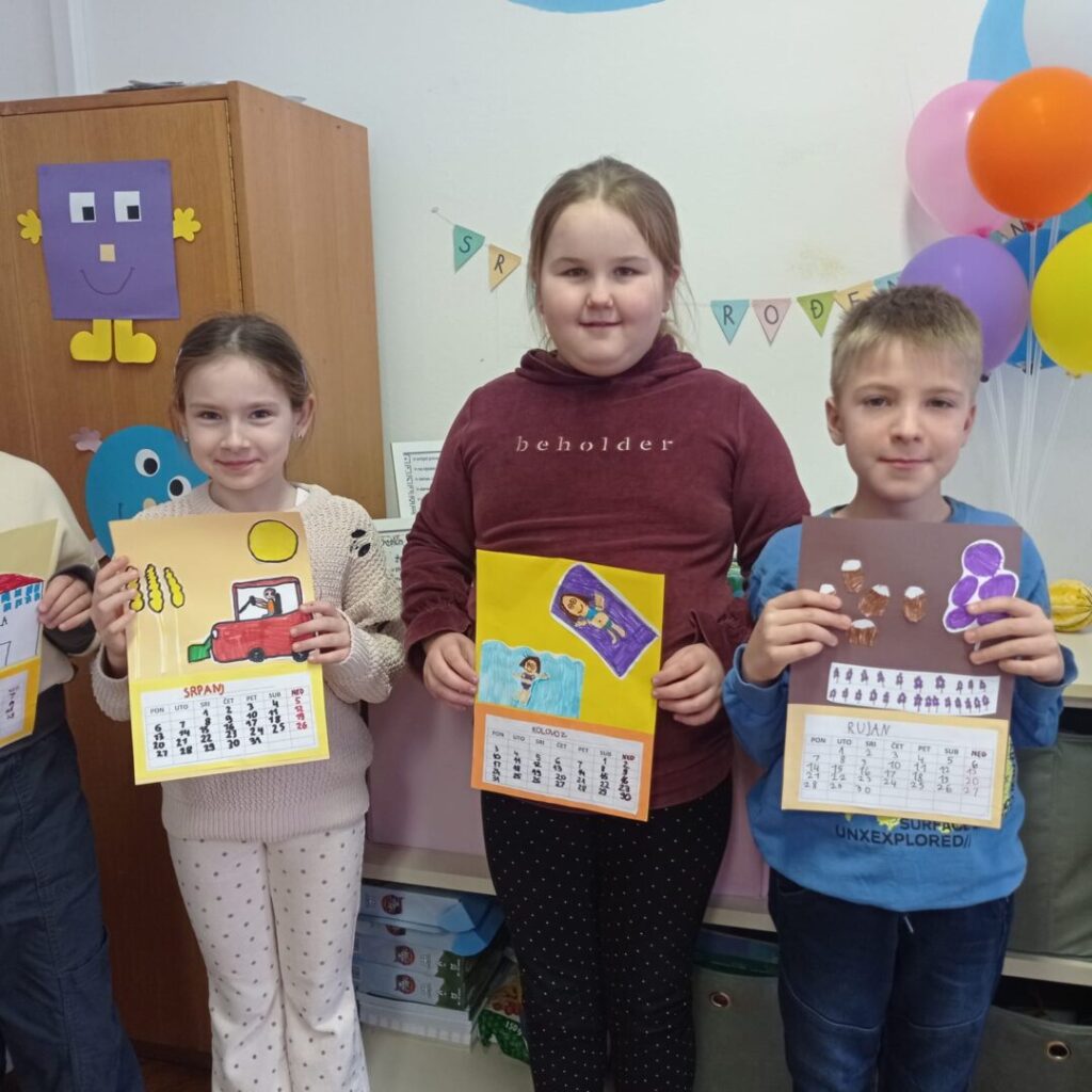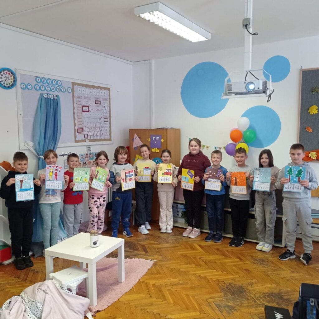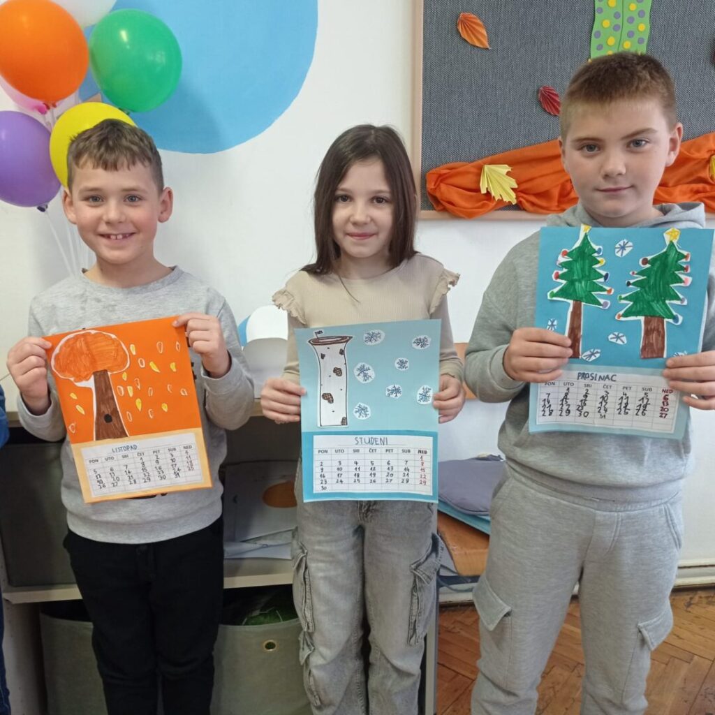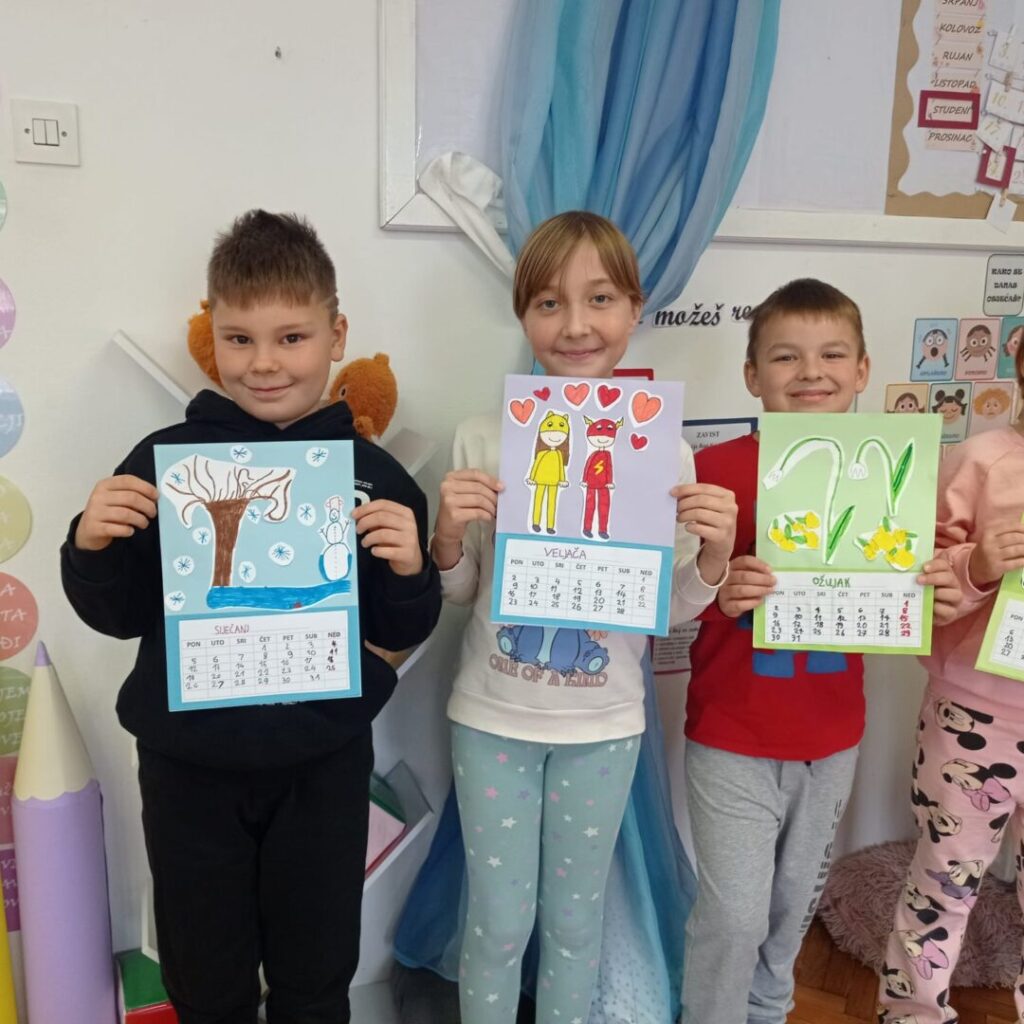 Na satu Likovne kulture učenici su pokazali svoju kreativnost – dizajnirali su razredni kalendar za 2026. godinu! Svaki učenik je oslikao jedan mjesec, a svi radovi spojeni su u jedinstven, šarolik i potpuno njihov razredni kalendar 2026., koji je sada ponosno izložen.